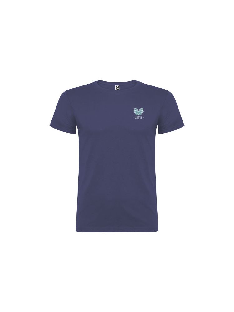T-shirt z krótkim rękawem. Podwójna tkanina z dodatkiem elastanu przy kołnierzu. Wzmocnione, kryte szwy na karczku. Brak szwów bocznych w wersji dla dorosłych. Usuwalna metka.