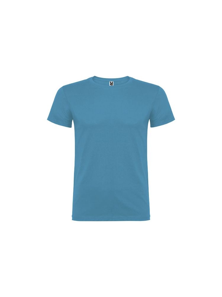 T-shirt z krótkim rękawem. Podwójna tkanina z dodatkiem elastanu przy kołnierzu. Wzmocnione, kryte szwy na karczku. Brak szwów bocznych w wersji dla dorosłych. Usuwalna metka.