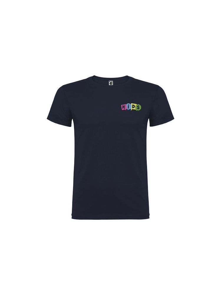 T-shirt z krótkim rękawem. Podwójna tkanina z dodatkiem elastanu przy kołnierzu. Wzmocnione, kryte szwy na karczku. Brak szwów bocznych w wersji dla dorosłych. Usuwalna metka.