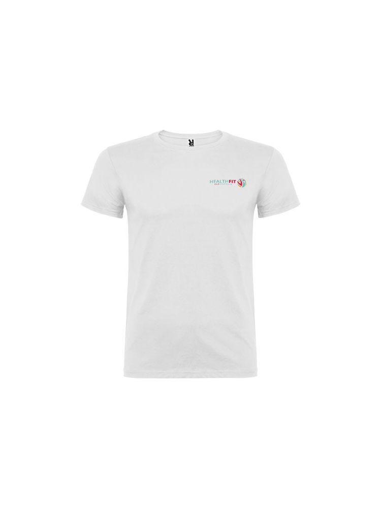 T-shirt z krótkim rękawem. Podwójna tkanina z dodatkiem elastanu przy kołnierzu. Wzmocnione, kryte szwy na karczku. Brak szwów bocznych w wersji dla dorosłych. Usuwalna metka.