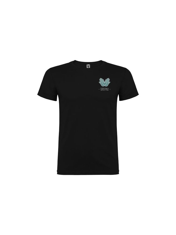 T-shirt z krótkim rękawem. Podwójna tkanina z dodatkiem elastanu przy kołnierzu. Wzmocnione, kryte szwy na karczku. Brak szwów bocznych w wersji dla dorosłych. Usuwalna metka.