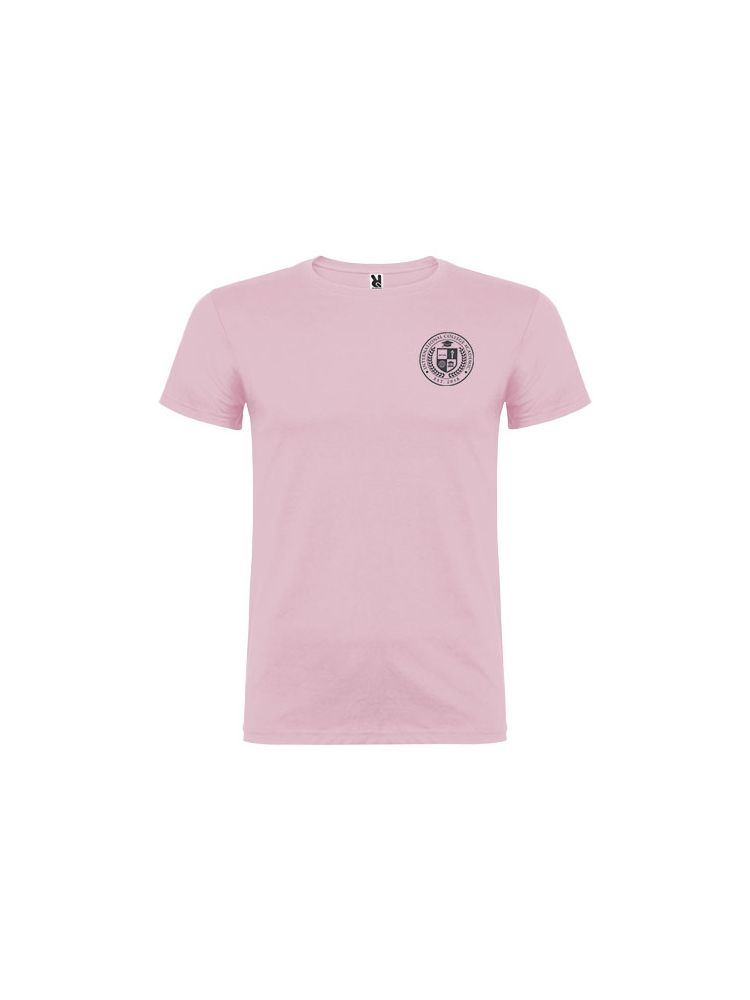 T-shirt z krótkim rękawem. Podwójna tkanina z dodatkiem elastanu przy kołnierzu. Wzmocnione, kryte szwy na karczku. Brak szwów bocznych w wersji dla dorosłych. Usuwalna metka.
