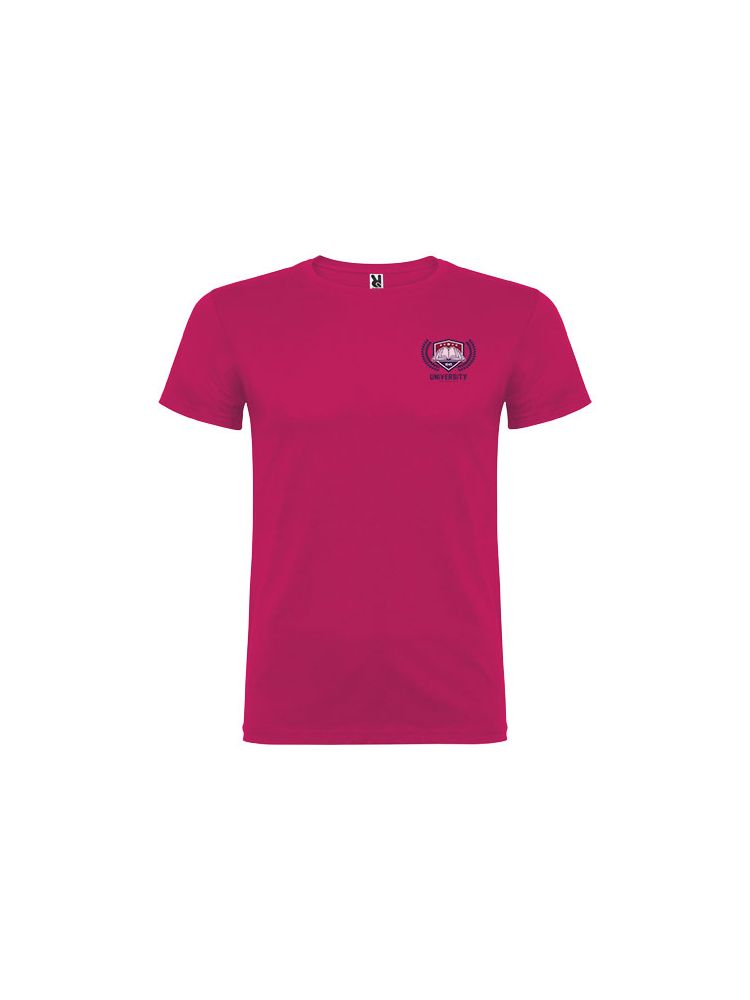 T-shirt z krótkim rękawem. Podwójna tkanina z dodatkiem elastanu przy kołnierzu. Wzmocnione, kryte szwy na karczku. Brak szwów bocznych w wersji dla dorosłych. Usuwalna metka.