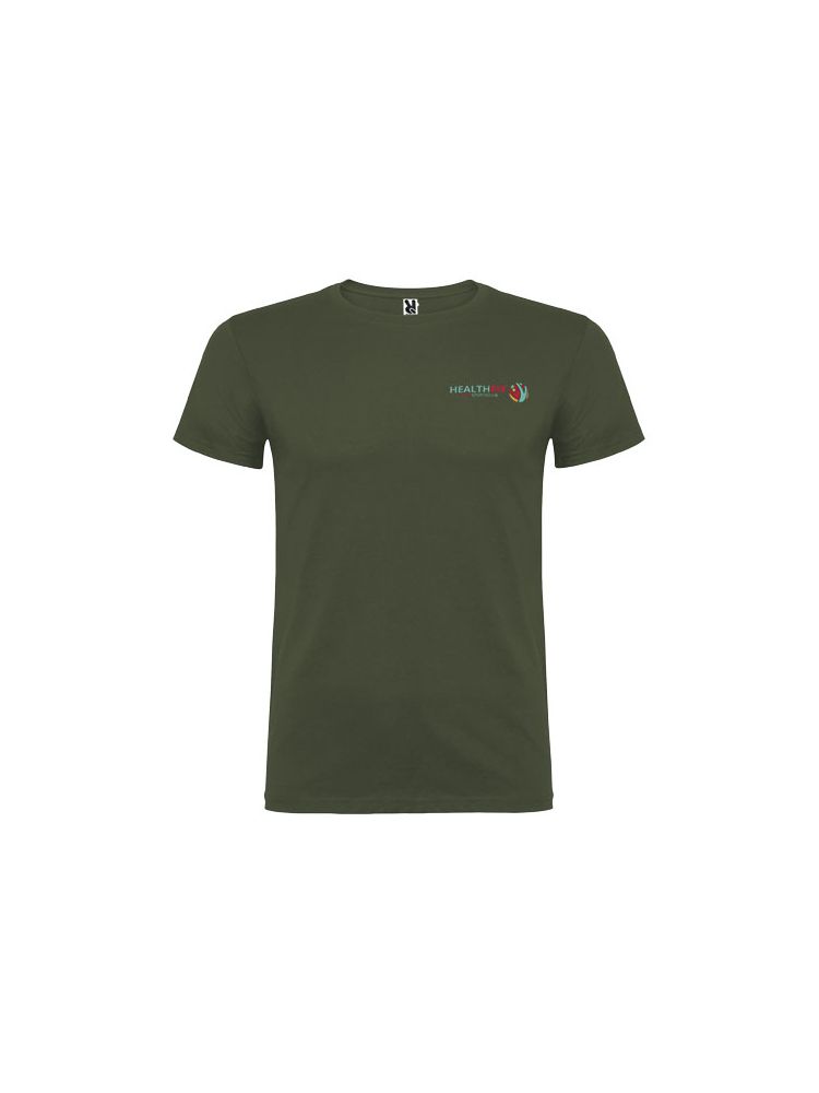 T-shirt z krótkim rękawem. Podwójna tkanina z dodatkiem elastanu przy kołnierzu. Wzmocnione, kryte szwy na karczku. Brak szwów bocznych w wersji dla dorosłych. Usuwalna metka.