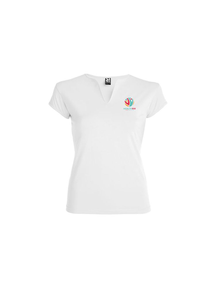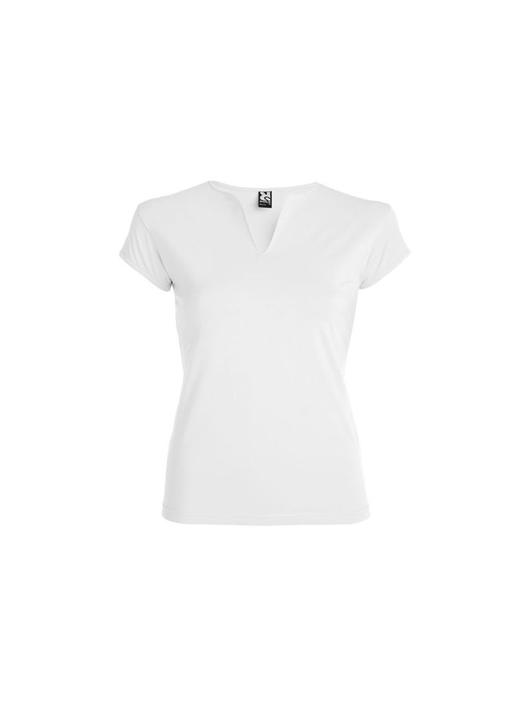 Dopasowana koszulka z okrągłym dekoltem. Rozcięcie przy kołnierzyku. Podcięte półrękawki i szwy boczne. Materiał wysokiej jakości, miękki i przyjemny w dotyku. Usuwalna metka.