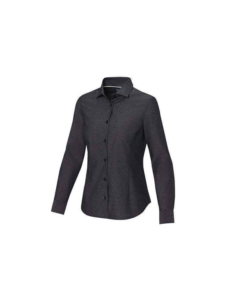 Damska koszula z długim rękawem marki Cuprite to zrównoważony i stylowy wybór. Wykonana z popeliny z bawełny organicznej, łączy etyczną produkcję z wyjątkowym komfortem. Posiada częściowo rozkloszowany kołnierzyk, który zapewnia swobodny i uniwersalny wygląd. Kontrastowe szwy na plisie rękawów i dolnej dziurce na guziki dodają subtelnego stylu. Koszula ma dopasowany krój, który podkreśla kobiecą sylwetkę.