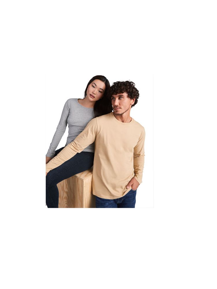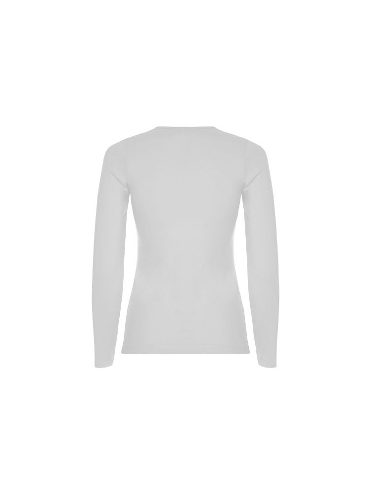 Częściowo dopasowana koszulka z długim rękawem i delikatnym wykończeniem przy szyi. Bez mankietów. Szwy boczne. Usuwalna metka.