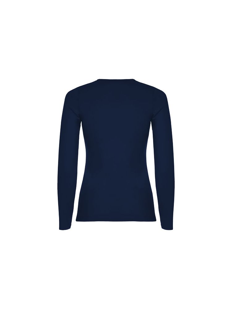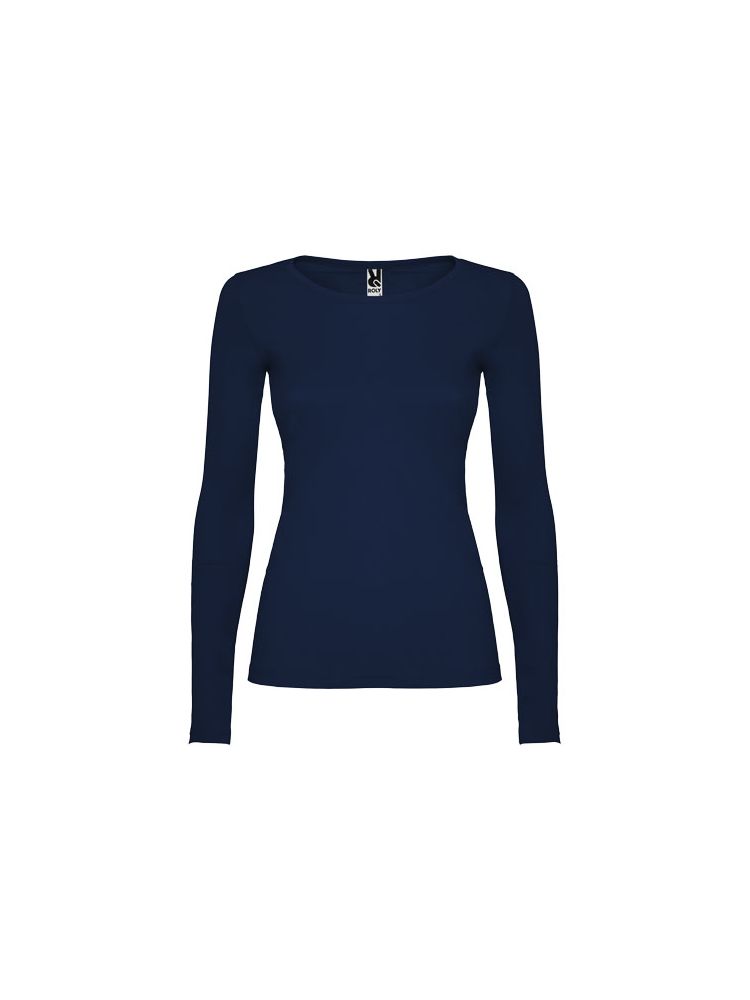 Częściowo dopasowana koszulka z długim rękawem i delikatnym wykończeniem przy szyi. Bez mankietów. Szwy boczne. Usuwalna metka.