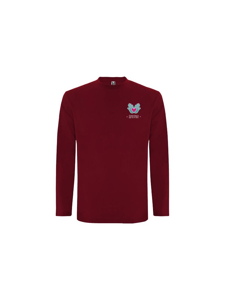 Koszulka z długim rękawem wykonana z materiału o strukturze rurkowej i 4-warstwowym okrągłym dekoltem. Wzmocnione kryte szwy w kołnierzu i ramionach. Brak mankietów. Usuwalna metka. Rurkowy krój w rozmiarach dla dorosłych i boczne szwy w rozmiarach dla dzieci.