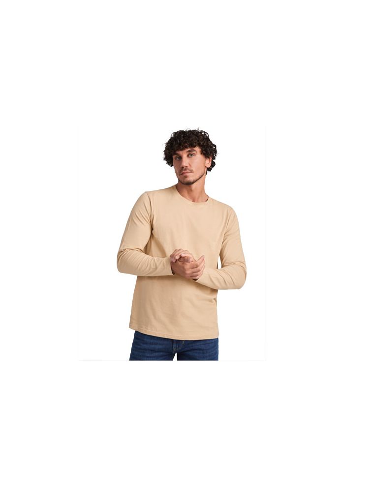Koszulka z długim rękawem wykonana z materiału o strukturze rurkowej i 4-warstwowym okrągłym dekoltem. Wzmocnione kryte szwy w kołnierzu i ramionach. Brak mankietów. Usuwalna metka. Rurkowy krój w rozmiarach dla dorosłych i boczne szwy w rozmiarach dla dzieci.