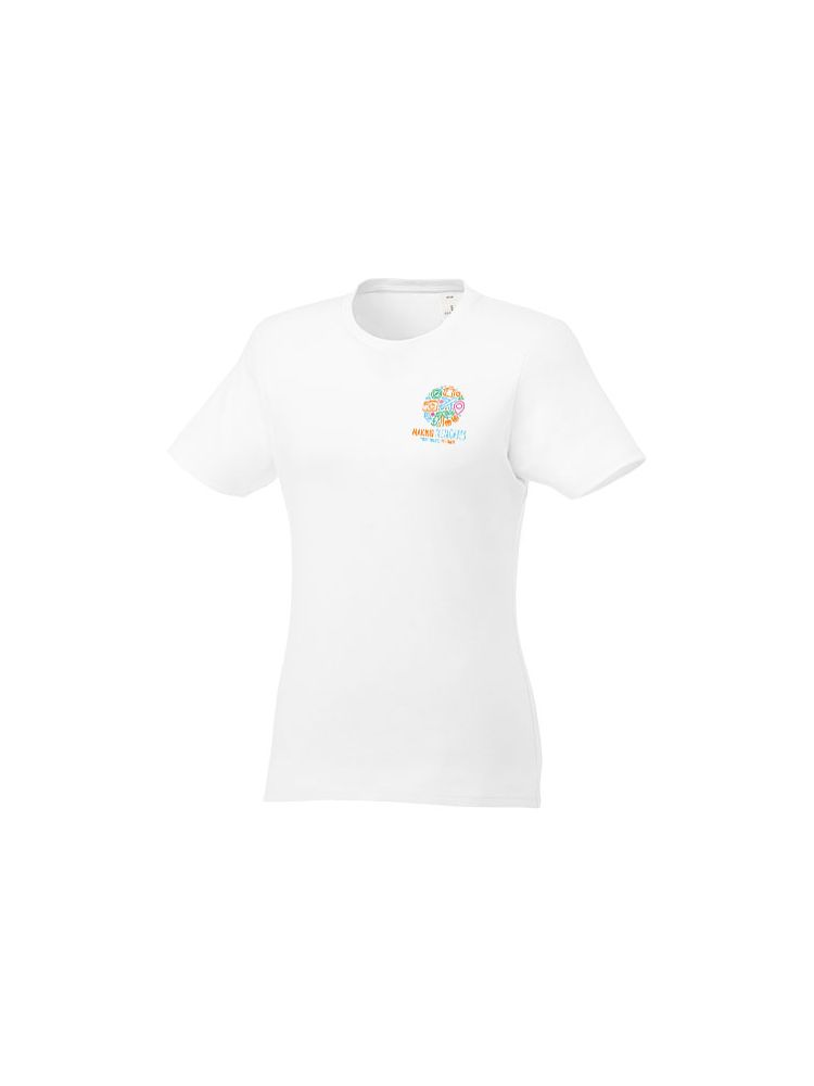 Damska koszulka Heros z krótkim rękawem jest idealna na wszystkie imprezy. Dopasowane szwy boczne, krótsze rękawy i niższy dekolt zostały starannie przemyślane, aby stworzyć kobiecy krój i design. Wykonany z bawełny o gramaturze 150 g/m2 jest lekki i wygodny w noszeniu. Dodatkowo, materiał bawełniany jest miękki w dotyku i idealny dla wysokiej jakości brandingu. Dzięki wewnętrznej metce na karku, którą można łatwo usunąć w dwóch segmentach, projekt pozostawia miejsce na niestandardowy, wewnętrzny branding przy zachowaniu informacji o rozmiarze.