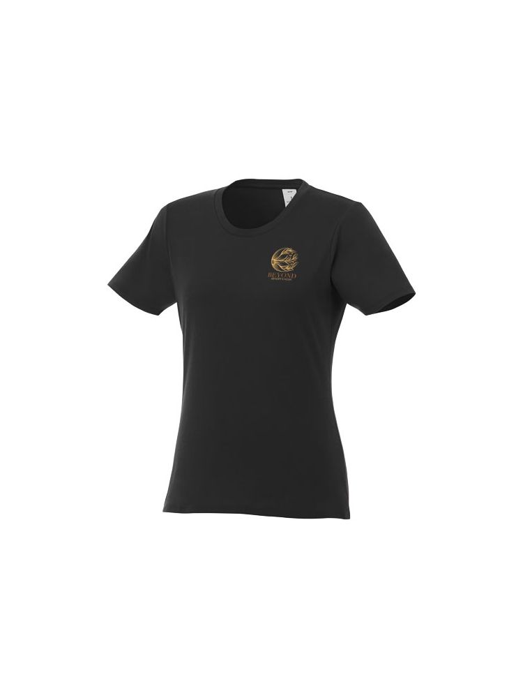 Damska koszulka Heros z krótkim rękawem jest idealna na wszystkie imprezy. Dopasowane szwy boczne, krótsze rękawy i niższy dekolt zostały starannie przemyślane, aby stworzyć kobiecy krój i design. Wykonany z bawełny o gramaturze 150 g/m2 jest lekki i wygodny w noszeniu. Dodatkowo, materiał bawełniany jest miękki w dotyku i idealny dla wysokiej jakości brandingu. Dzięki wewnętrznej metce na karku, którą można łatwo usunąć w dwóch segmentach, projekt pozostawia miejsce na niestandardowy, wewnętrzny branding przy zachowaniu informacji o rozmiarze.