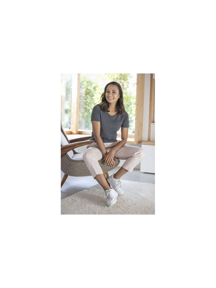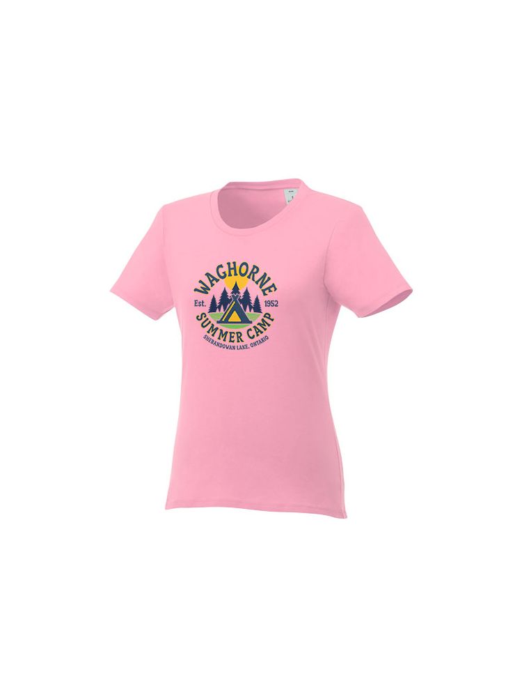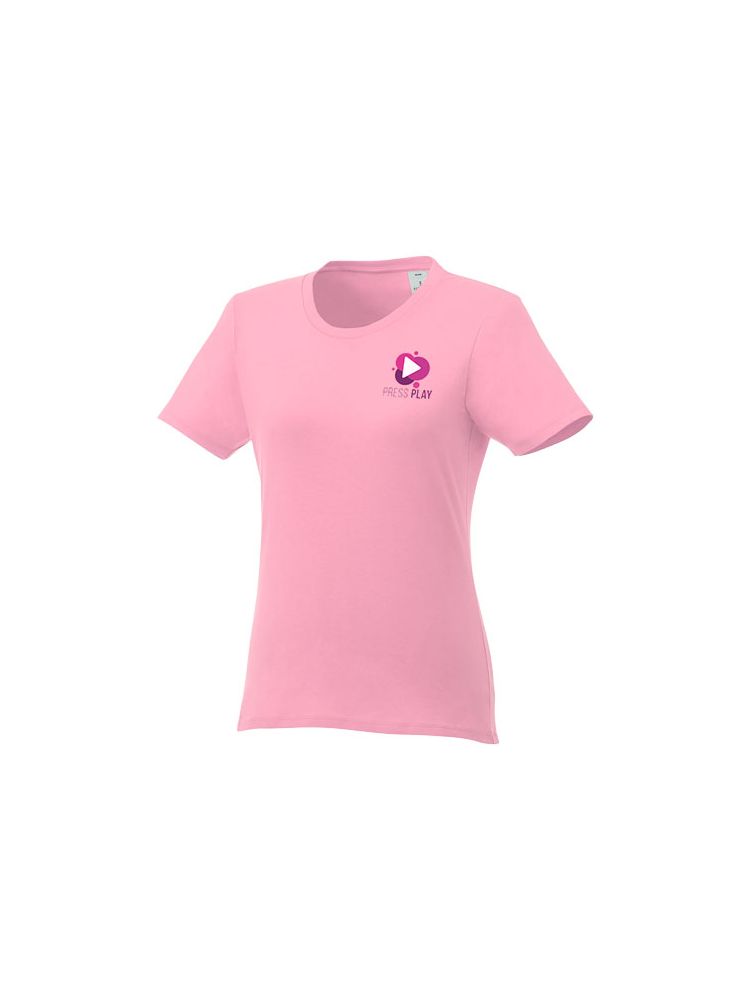 Damska koszulka Heros z krótkim rękawem jest idealna na wszystkie imprezy. Dopasowane szwy boczne, krótsze rękawy i niższy dekolt zostały starannie przemyślane, aby stworzyć kobiecy krój i design. Wykonany z bawełny o gramaturze 150 g/m2 jest lekki i wygodny w noszeniu. Dodatkowo, materiał bawełniany jest miękki w dotyku i idealny dla wysokiej jakości brandingu. Dzięki wewnętrznej metce na karku, którą można łatwo usunąć w dwóch segmentach, projekt pozostawia miejsce na niestandardowy, wewnętrzny branding przy zachowaniu informacji o rozmiarze.
