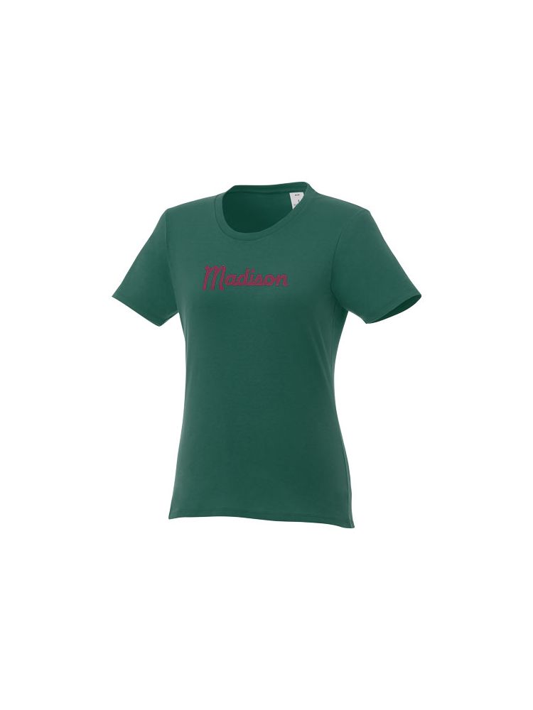 Damska koszulka Heros z krótkim rękawem jest idealna na wszystkie imprezy. Dopasowane szwy boczne, krótsze rękawy i niższy dekolt zostały starannie przemyślane, aby stworzyć kobiecy krój i design. Wykonany z bawełny o gramaturze 150 g/m2 jest lekki i wygodny w noszeniu. Dodatkowo, materiał bawełniany jest miękki w dotyku i idealny dla wysokiej jakości brandingu. Dzięki wewnętrznej metce na karku, którą można łatwo usunąć w dwóch segmentach, projekt pozostawia miejsce na niestandardowy, wewnętrzny branding przy zachowaniu informacji o rozmiarze.