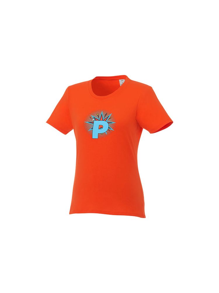 Damska koszulka Heros z krótkim rękawem jest idealna na wszystkie imprezy. Dopasowane szwy boczne, krótsze rękawy i niższy dekolt zostały starannie przemyślane, aby stworzyć kobiecy krój i design. Wykonany z bawełny o gramaturze 150 g/m2 jest lekki i wygodny w noszeniu. Dodatkowo, materiał bawełniany jest miękki w dotyku i idealny dla wysokiej jakości brandingu. Dzięki wewnętrznej metce na karku, którą można łatwo usunąć w dwóch segmentach, projekt pozostawia miejsce na niestandardowy, wewnętrzny branding przy zachowaniu informacji o rozmiarze.