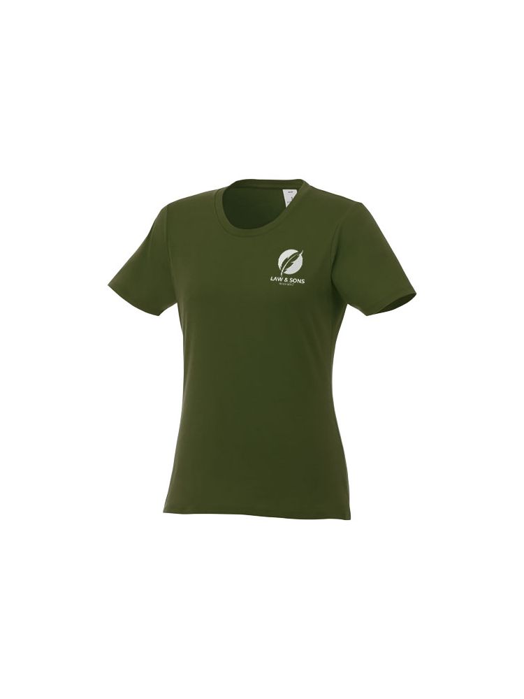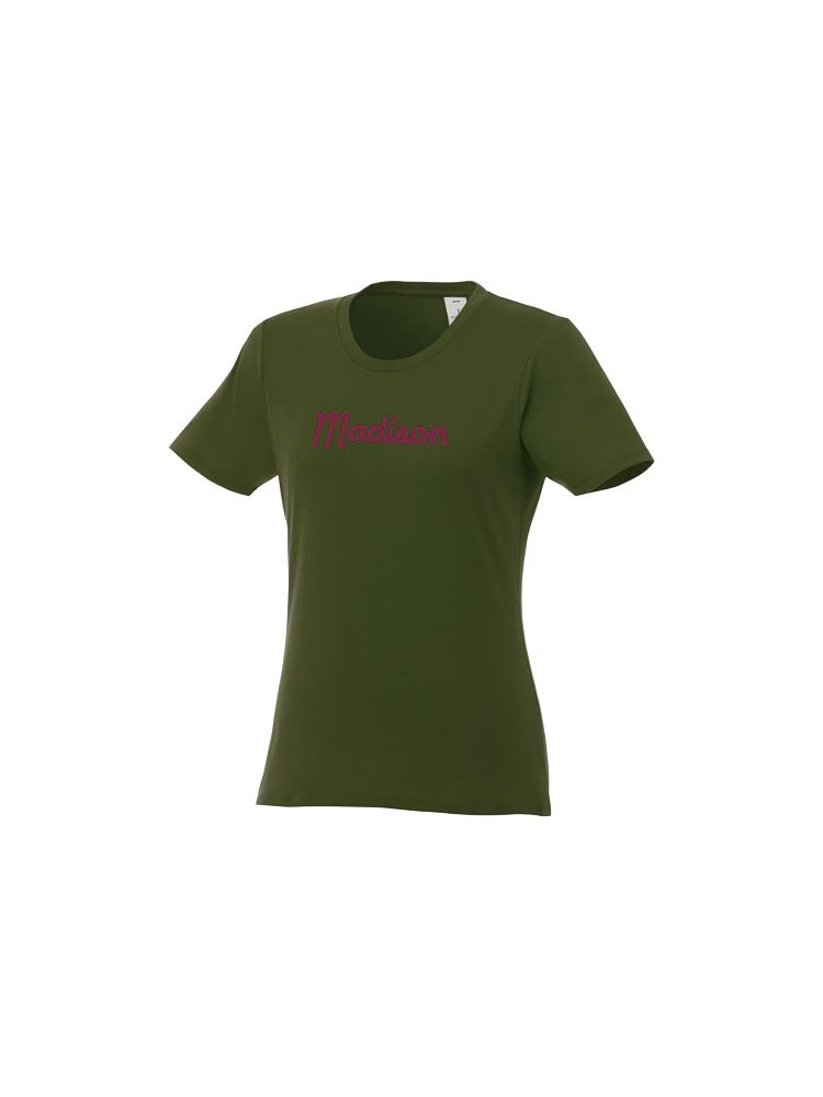 Damska koszulka Heros z krótkim rękawem jest idealna na wszystkie imprezy. Dopasowane szwy boczne, krótsze rękawy i niższy dekolt zostały starannie przemyślane, aby stworzyć kobiecy krój i design. Wykonany z bawełny o gramaturze 150 g/m2 jest lekki i wygodny w noszeniu. Dodatkowo, materiał bawełniany jest miękki w dotyku i idealny dla wysokiej jakości brandingu. Dzięki wewnętrznej metce na karku, którą można łatwo usunąć w dwóch segmentach, projekt pozostawia miejsce na niestandardowy, wewnętrzny branding przy zachowaniu informacji o rozmiarze.