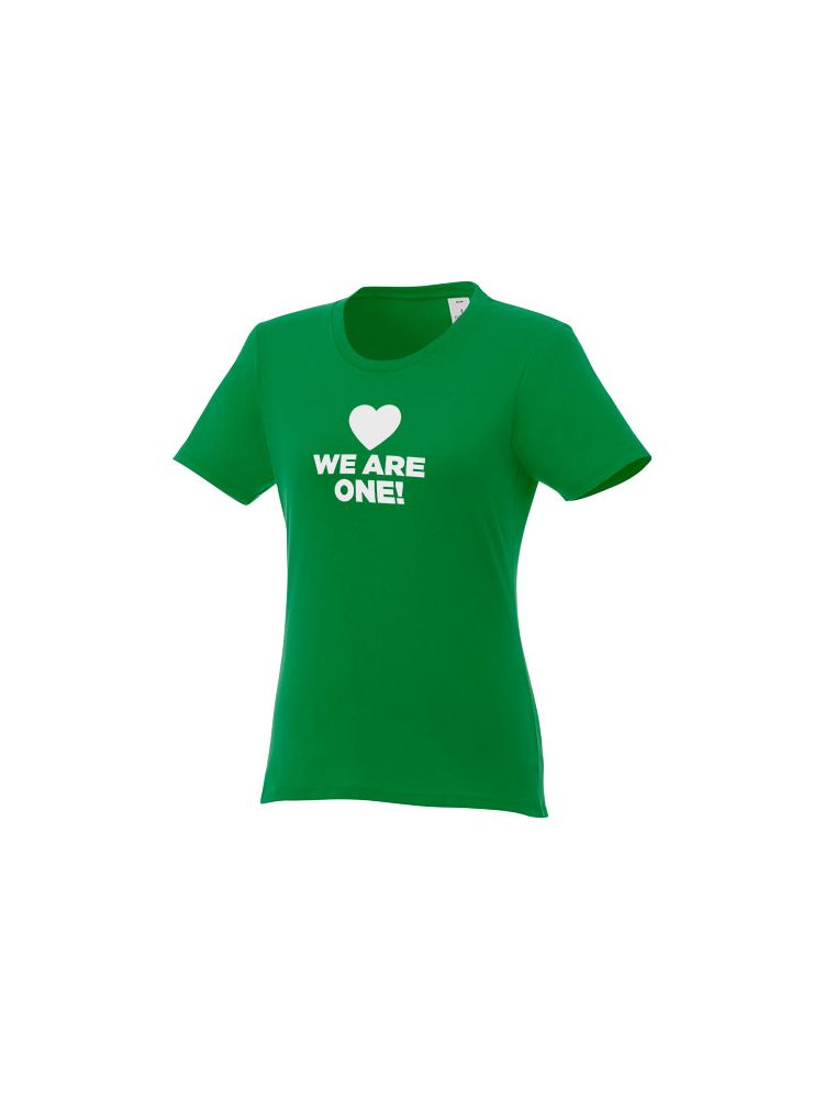 Damska koszulka Heros z krótkim rękawem jest idealna na wszystkie imprezy. Dopasowane szwy boczne, krótsze rękawy i niższy dekolt zostały starannie przemyślane, aby stworzyć kobiecy krój i design. Wykonany z bawełny o gramaturze 150 g/m2 jest lekki i wygodny w noszeniu. Dodatkowo, materiał bawełniany jest miękki w dotyku i idealny dla wysokiej jakości brandingu. Dzięki wewnętrznej metce na karku, którą można łatwo usunąć w dwóch segmentach, projekt pozostawia miejsce na niestandardowy, wewnętrzny branding przy zachowaniu informacji o rozmiarze.