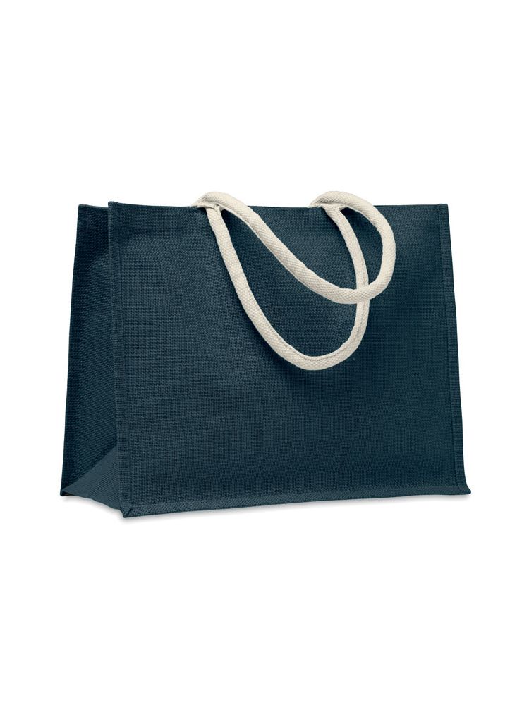 Laminowana jutowa torba plażowa lub na zakupy z bawełnianym uchwytem. Krótkie uchwyty. Ten produkt posiada certyfikat OEKO-TEX® STANDARD 100.