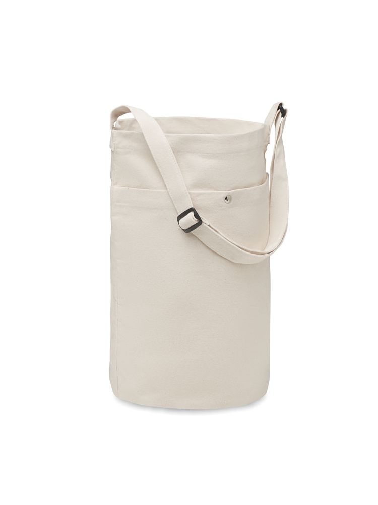Torba z płótna z długim, regulowanym paskiem na ramię i dużą przednią kieszenią z zamknięciem na zatrzask. Zawiera wewnętrzną kieszeń. 270 gr/m².