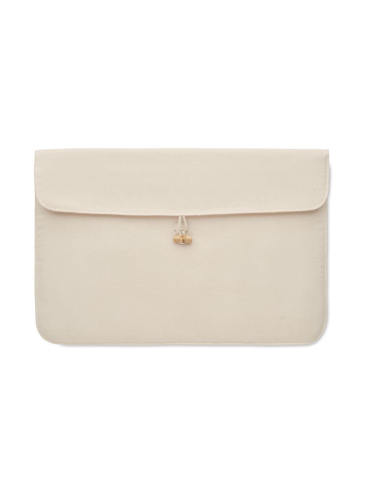 15-calowa wyściełana torba na laptopa z bawełny 220 gr/m². Wewnętrzna podszewka 120 gr/m². Bambusowe zapięcie na guzik.
