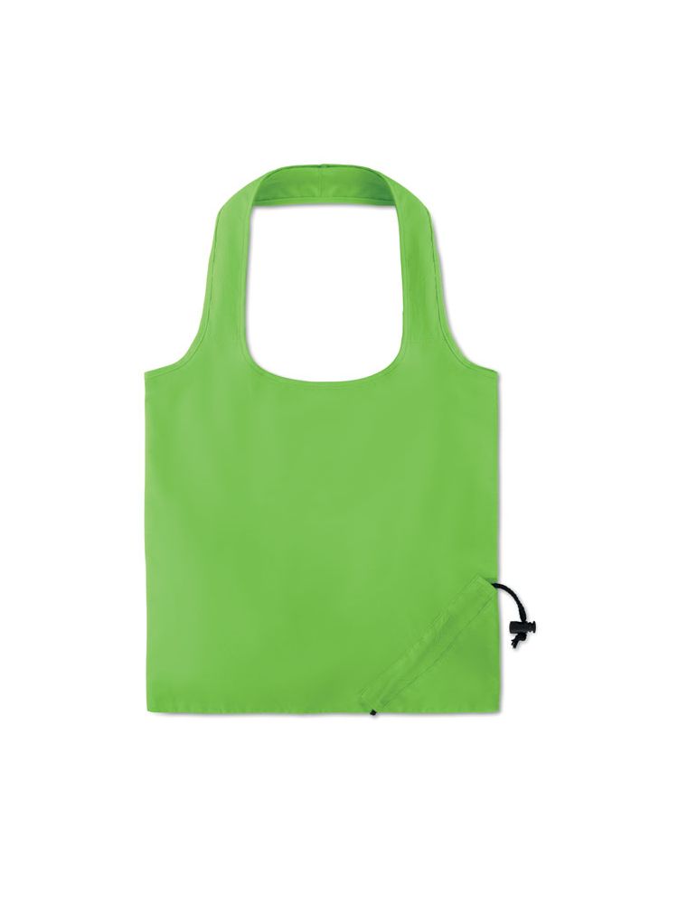 Składana torba na zakupy z bawełny o gramaturze 105 g/m2, z krótkimi uchwytami oraz z etui zamykanym na sznurek.