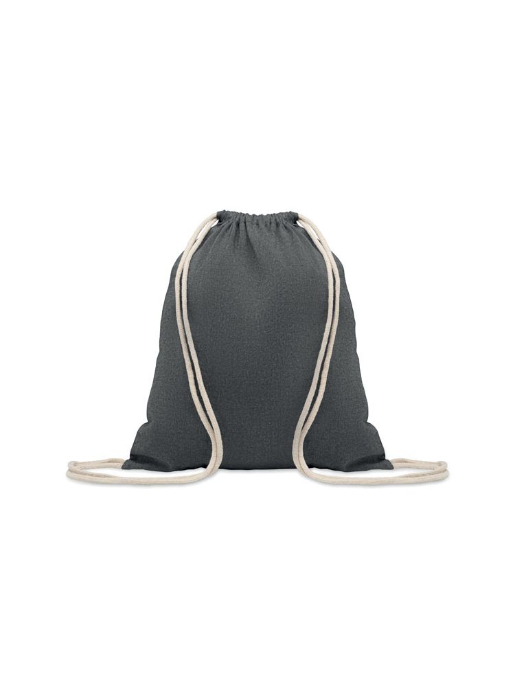 Torba ze sznurkiem z bawełny z recyklingu (80% bawełny z recyklingu, 20% zwykłej bawełny)z dodatkowymi krótkimi uchwytami. 140 gr/m².