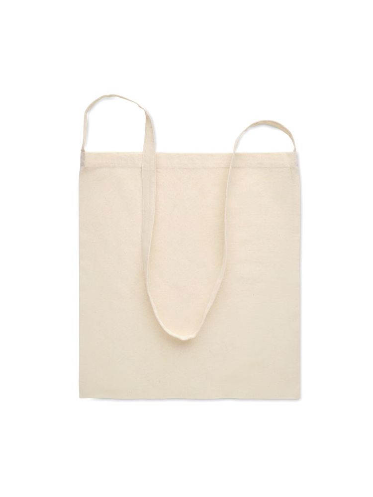 Bawełniana torba na zakupy z jednym długim uchwytem. 140 gr/m². Wyprodukowana zgodnie z certyfikowanym standardem stosowania szkodliwych substancji w tekstyliach.