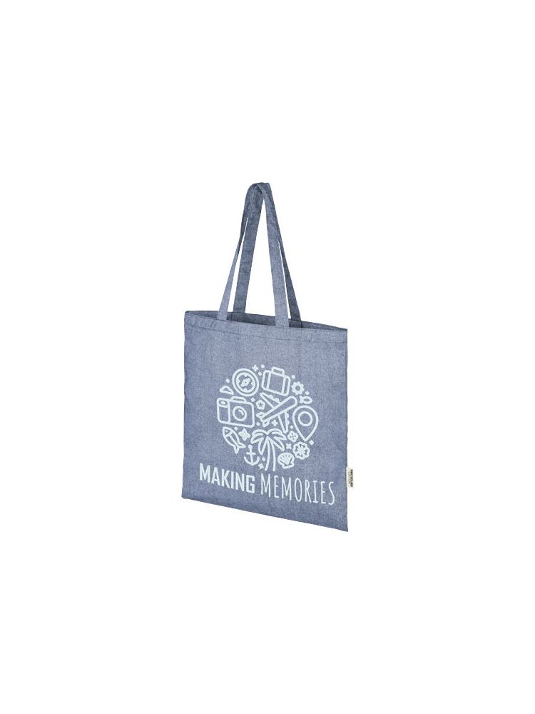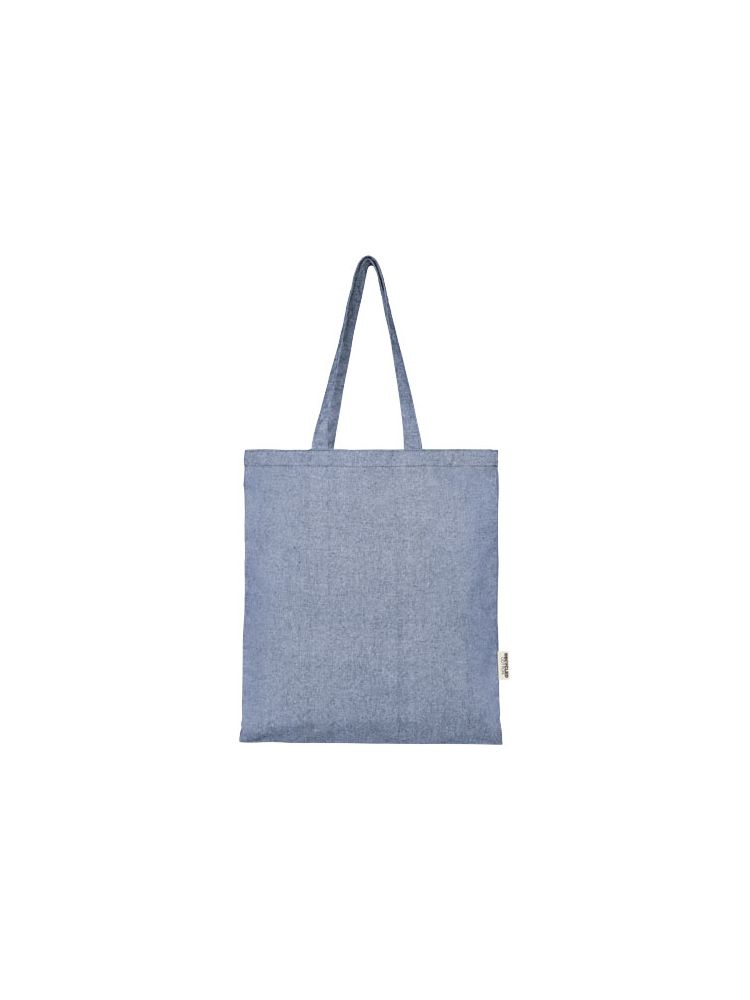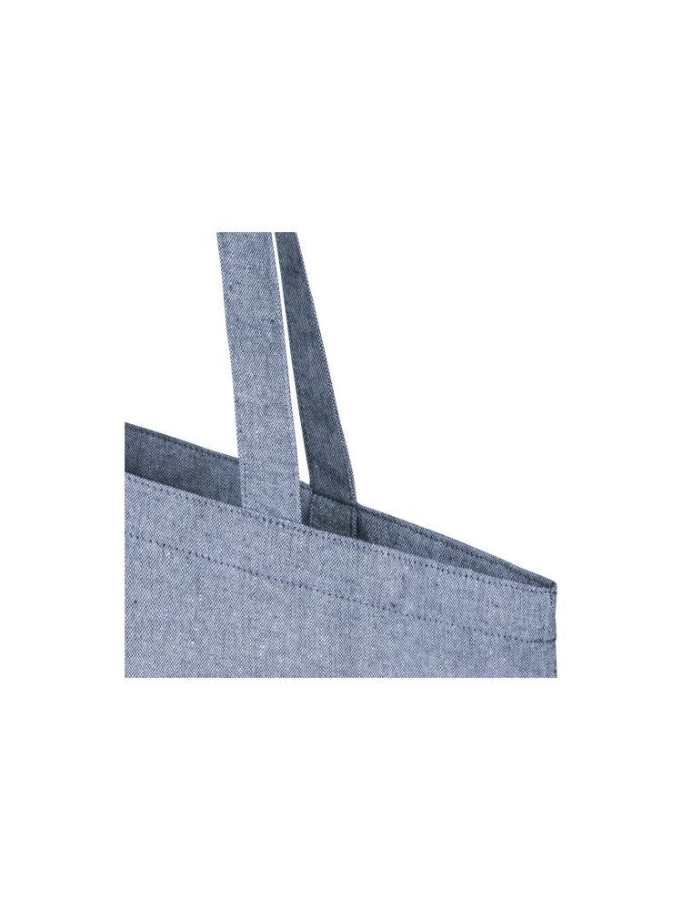 Torba na zakupy wykonana z mieszanki bawełny i poliestru pochodzących z recyklingu o gramaturze 150 g/m². Torbę można łatwo złożyć, aby zmieściła się w niewielkiej przestrzeni i jest idealnym towarzyszem podczas różnych czynności, takich jak zakupy spożywcze, jednodniowe wycieczki lub projekty rzemieślnicze. Bawełna poddana recyklingowi pochodzi z tzw. wstępnych odpadów konsumpcyjnych wytwarzanych przez zakłady włókiennicze w trakcie procesu cięcia. Podobne kolory są mieszane ze sobą, więc nie jest wymagane dodatkowe barwienie. Ze względu na charakter bawełny pochodzącej z recyklingu mogą występować niewielkie różnice w kolorze. Dodaje to bardziej autentycznego wyglądu. Do każdej torby dołączony jest również znacznik Aware™. Ta innowacyjna funkcja pozwala użytkownikom prześledzić za pomocą kodu QR pochodzenie produktu i pokonaną przez niego drogę, zwiększając przejrzystość łańcucha dostaw i wspierając silniejszy związek między produktem a jego procesem produkcyjnym. Wytrzymałość do 5 kg. Długość uchwytu: 31 cm.