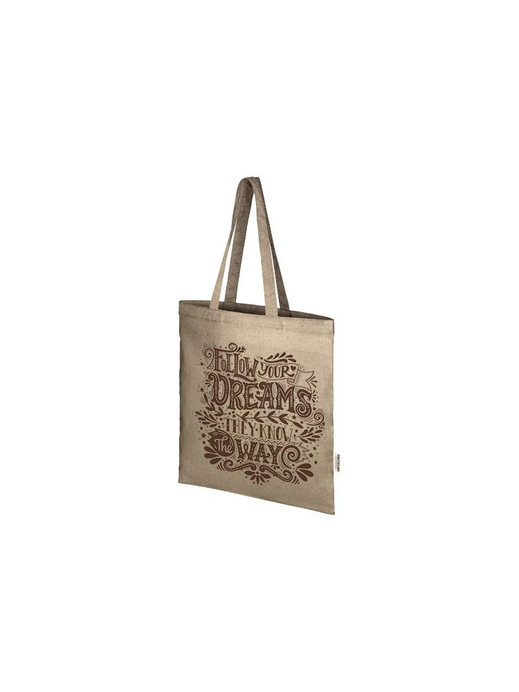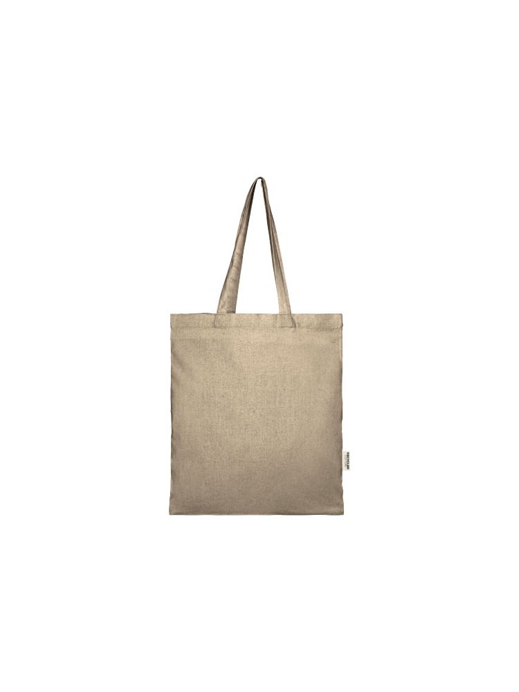 Torba na zakupy wykonana z mieszanki bawełny i poliestru pochodzących z recyklingu o gramaturze 150 g/m². Torbę można łatwo złożyć, aby zmieściła się w niewielkiej przestrzeni i jest idealnym towarzyszem podczas różnych czynności, takich jak zakupy spożywcze, jednodniowe wycieczki lub projekty rzemieślnicze. Bawełna poddana recyklingowi pochodzi z tzw. wstępnych odpadów konsumpcyjnych wytwarzanych przez zakłady włókiennicze w trakcie procesu cięcia. Podobne kolory są mieszane ze sobą, więc nie jest wymagane dodatkowe barwienie. Ze względu na charakter bawełny pochodzącej z recyklingu mogą występować niewielkie różnice w kolorze. Dodaje to bardziej autentycznego wyglądu. Do każdej torby dołączony jest również znacznik Aware™. Ta innowacyjna funkcja pozwala użytkownikom prześledzić za pomocą kodu QR pochodzenie produktu i pokonaną przez niego drogę, zwiększając przejrzystość łańcucha dostaw i wspierając silniejszy związek między produktem a jego procesem produkcyjnym. Wytrzymałość do 5 kg. Długość uchwytu: 31 cm.