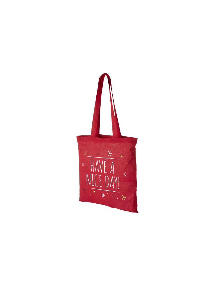 Idealna torba do rozdawania podczas eventów, konferencji lub jako torba na drobne zakupy spożywcze. Gęstość bawełny 140 g/m² sprawia, że torba jest mocna, trwała i nadaje się do noszenia ciężkich przedmiotów w głównej komorze. Dzięki uchwytom na ramię o długości 30 cm torba Madras jest łatwa do przenoszenia. Ponadto, duże powierzchnie nadruku zapewniają dużo miejsca na umieszczenie dowolnego logo.
