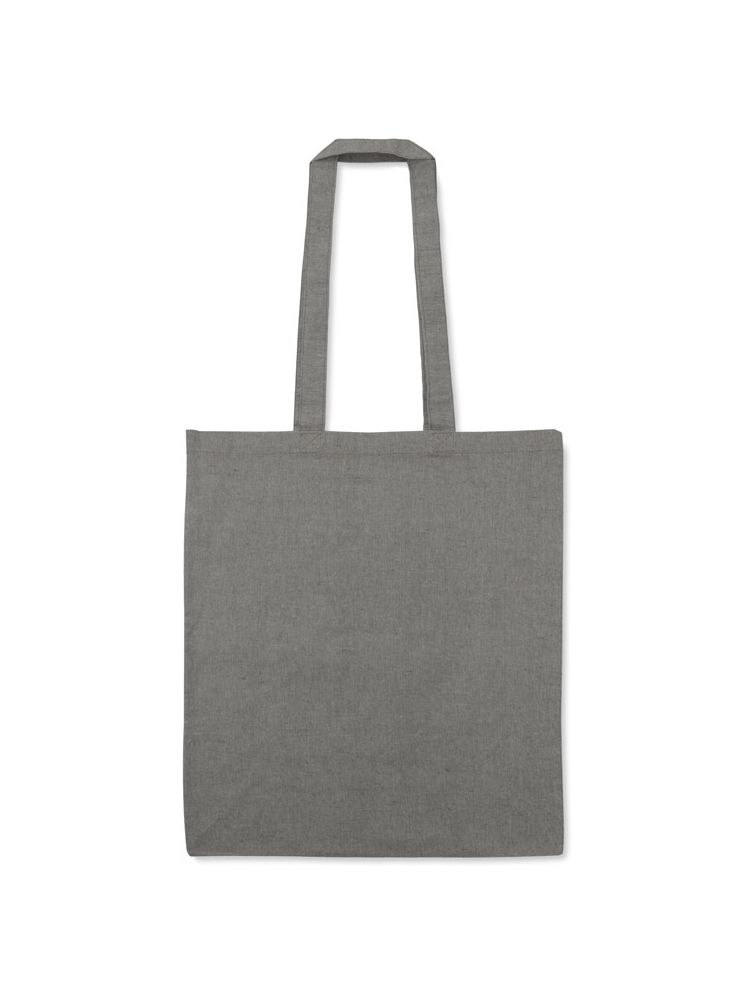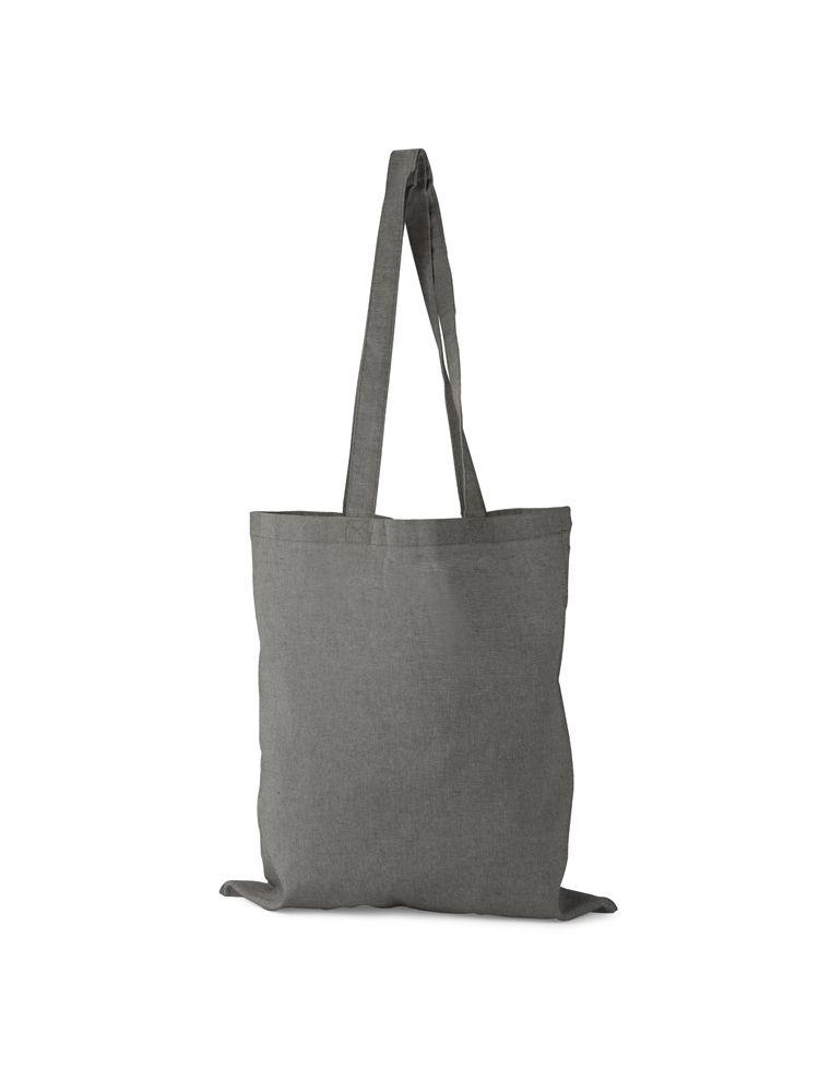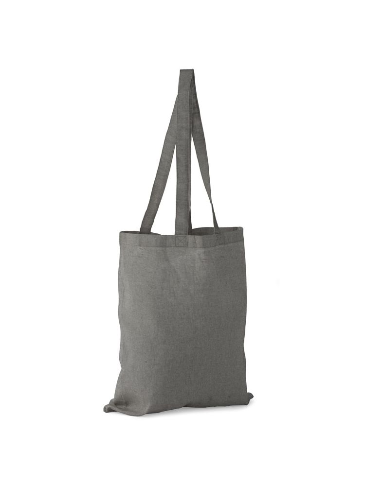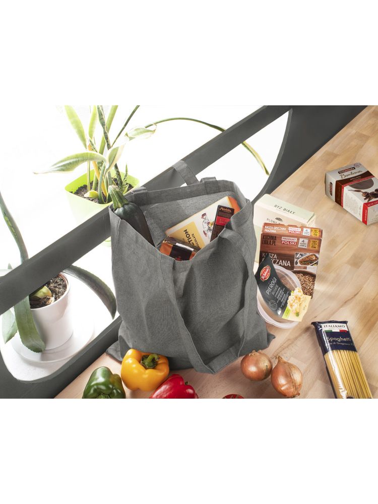 Torba MELANGE wykonana jest z bawełny pozyskanej z recyklingu, dzięki czemu oszczędność wody w procesie produkcyjnym jest znaczna. Posiada rączki o długości około 70 cm, poszerzone boki i dno. Gramatura bawełny 140g/m2