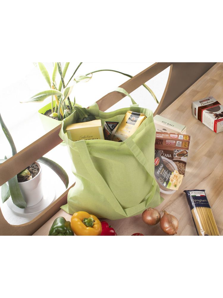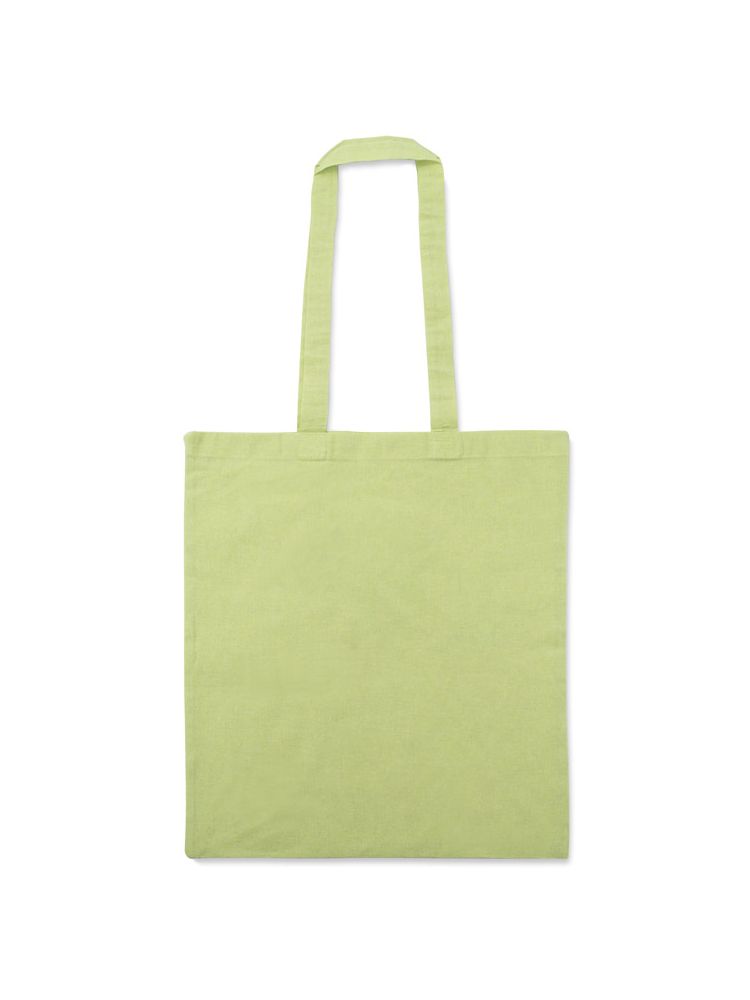 Torba MELANGE wykonana jest z bawełny pozyskanej z recyklingu, dzięki czemu oszczędność wody w procesie produkcyjnym jest znaczna. Posiada rączki o długości około 70 cm, poszerzone boki i dno. Gramatura bawełny 140g/m2.