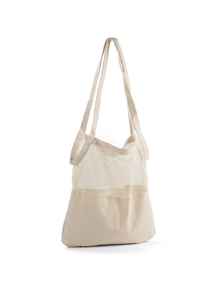 Torba na zakupy NETI jest wykonana z bawełny o wysokiej gramaturze 280 g/m. Torba posiada długie uszy pozwalające na noszenie jej na ramieniu. Połączenie dwóch struktur materiałów daje efektowny i modny wygląd.