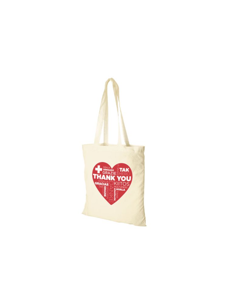 Mocna i trwała torba z bawełny 180 g/m² z dużą komorą główną i widocznym logo. Wytrzymały materiał bawełniany sprawia, że nadaje się do noszenia cięższych przedmiotów. Uchwyty mają długość 30 cm i są wystarczająco długie, aby nosić torbę na jednym ramieniu.