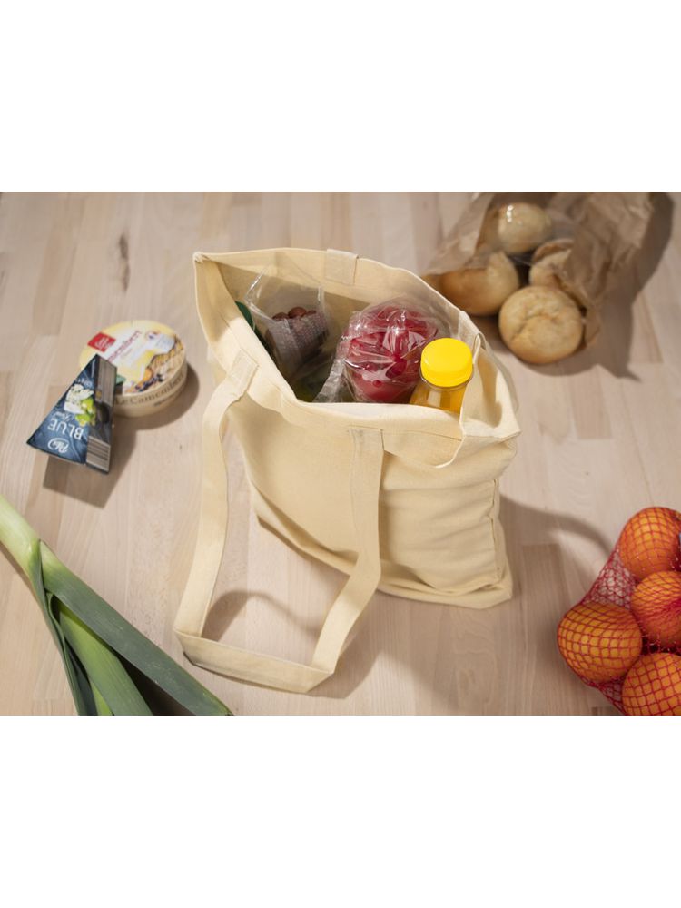 Torba ekologiczna wykonana z naturalnej bardzo trwałej bawełny (220g/m2) z długimi rączkami. Dodatkowe przeszycia przy rączkach zapewniają większą wytrzymałość torby.