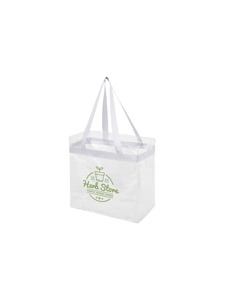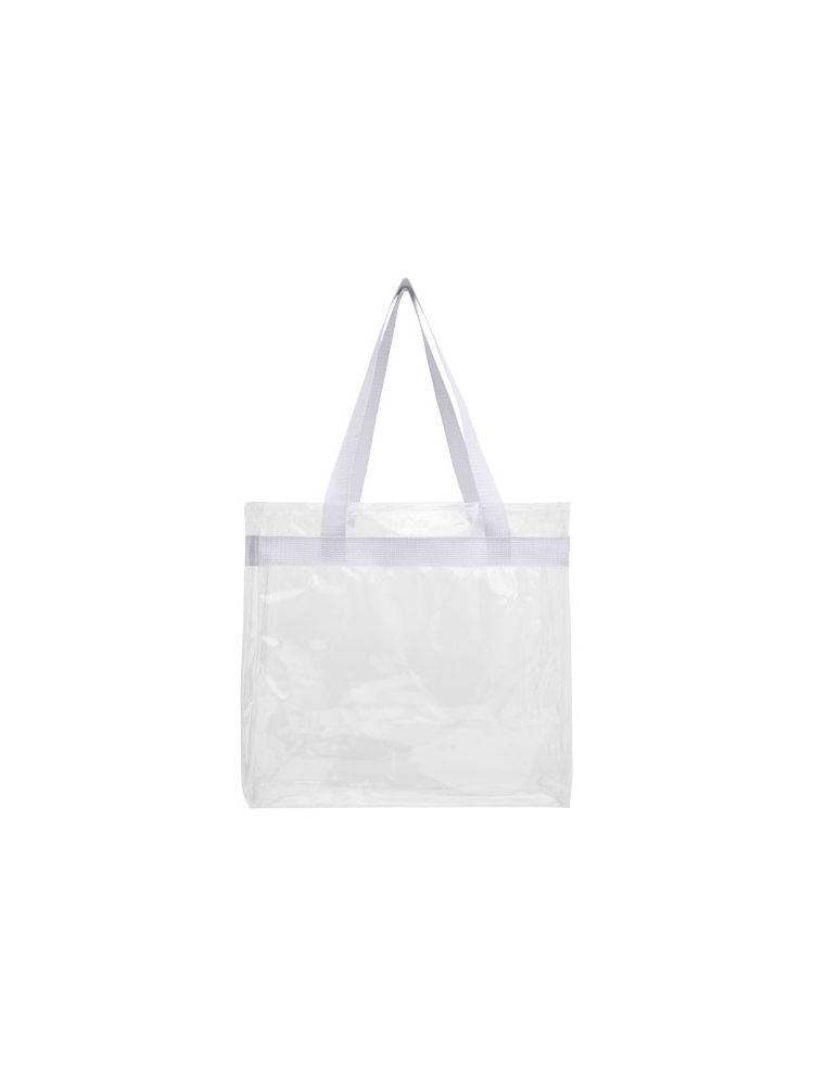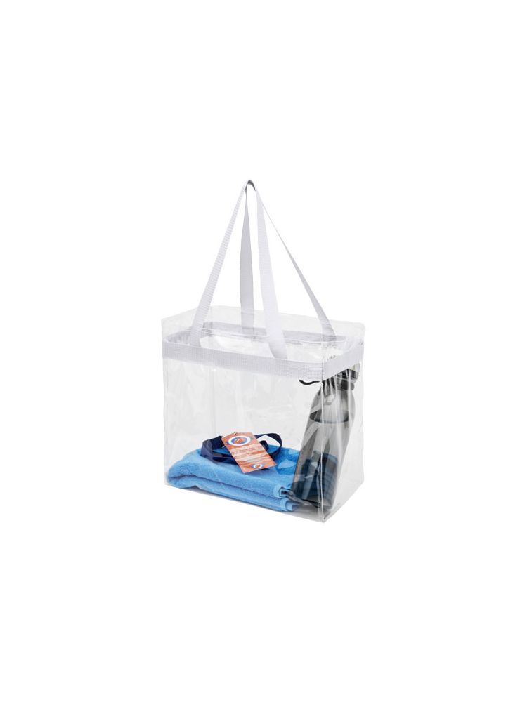 Transparentna torba idealna dla fanów sportu, gdy chcą spakować się na stadion. Świetna także w szkole i pracy, która wymaga przechodzenia przez kontrolę bezpieczeństwa. Jedna kieszeń ze sportowym wykończeniem i podwójnymi uchwytami. Długość uchwytów 27 cm. Nie zawiera akcesoriów.