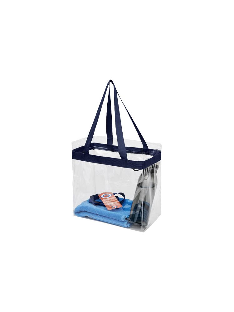 Transparentna torba idealna dla fanów sportu, gdy chcą spakować się na stadion. Świetna także w szkole i pracy, która wymaga przechodzenia przez kontrolę bezpieczeństwa. Jedna kieszeń ze sportowym wykończeniem i podwójnymi uchwytami. Długość uchwytów 27 cm. Nie zawiera akcesoriów.