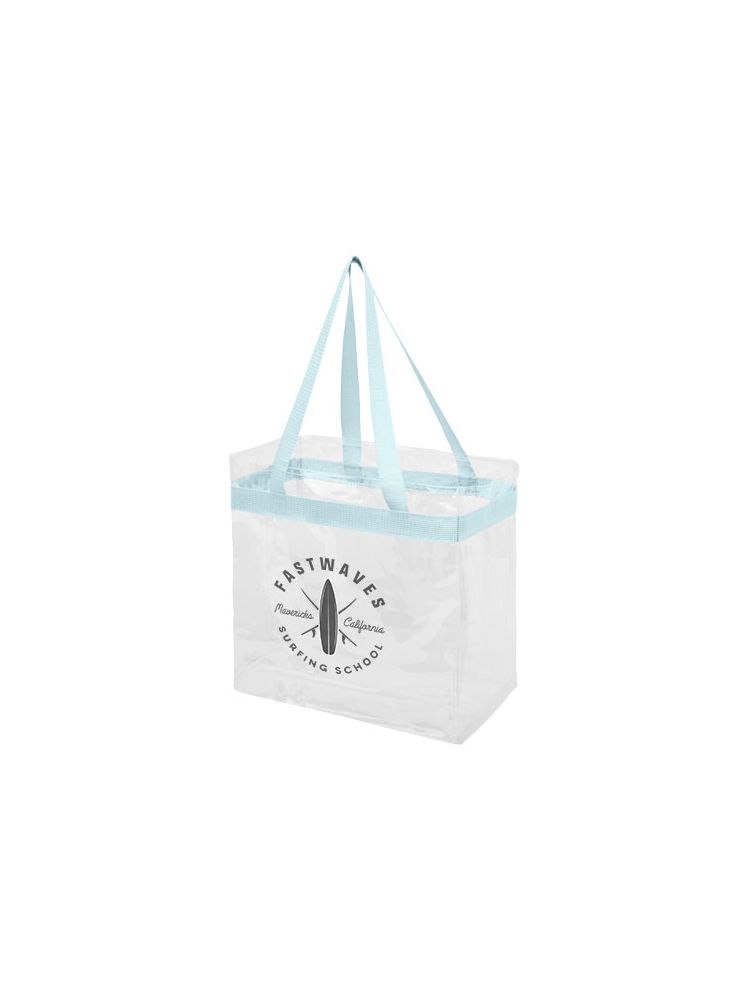 Transparentna torba idealna dla fanów sportu, gdy chcą spakować się na stadion. Świetna także w szkole i pracy, która wymaga przechodzenia przez kontrolę bezpieczeństwa. Jedna kieszeń ze sportowym wykończeniem i podwójnymi uchwytami. Długość uchwytów 27 cm. Nie zawiera akcesoriów.