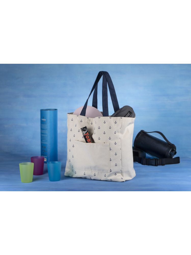 Pojemna jednokomorowa torba MARINE przyda się zarówno podczas wakacji na plaży, jak i w mieście. Posiada atrakcyjny nadruk w kotwice. Wykonana jest z wytrzymałej bawełny o gramaturze 220 g/m2. Torba posiada zewnętrzną kieszeń boczną oraz długie rączki do zawieszenia na ramieniu.