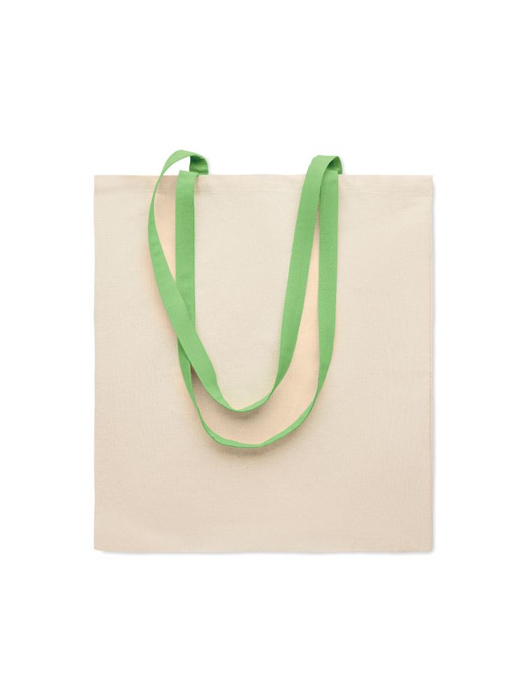 Torba na zakupy z długimi kolorowymi uchwytami z bawełny. 140 gr/m². Ta torba jest idealna na codzienne zakupy. Dostępna z różnokolorowymi uchwytami. Torbę można przewiesić przez ramię, gdy jest ciężka, aby mieć wolne ręce. Maks. obciążenie: 2,5 kg. Ten produkt posiada certyfikat OEKO-TEX® STANDARD 100.