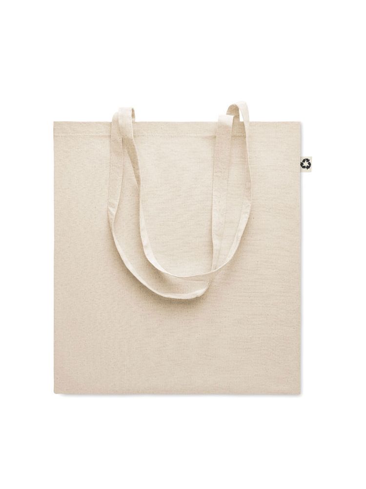Torba na zakupy z bawełny pochodzącej z recyklingu (65% bawełny z recyklingu, 35% zwykłej bawełny) z długimi uchwytami. 140 gr/m².