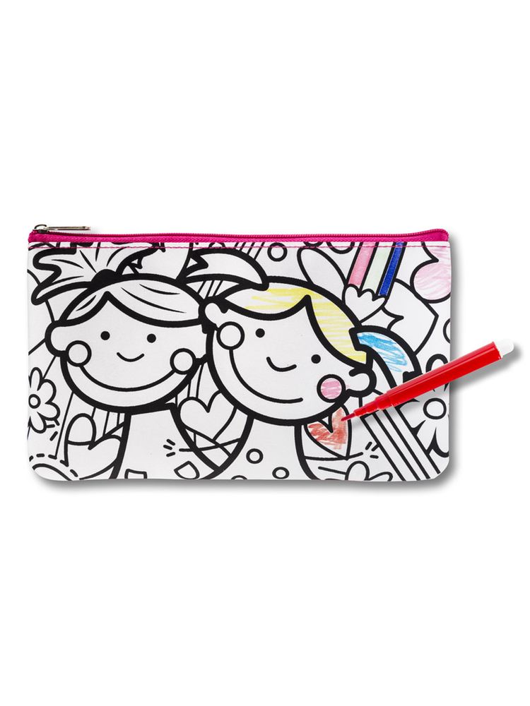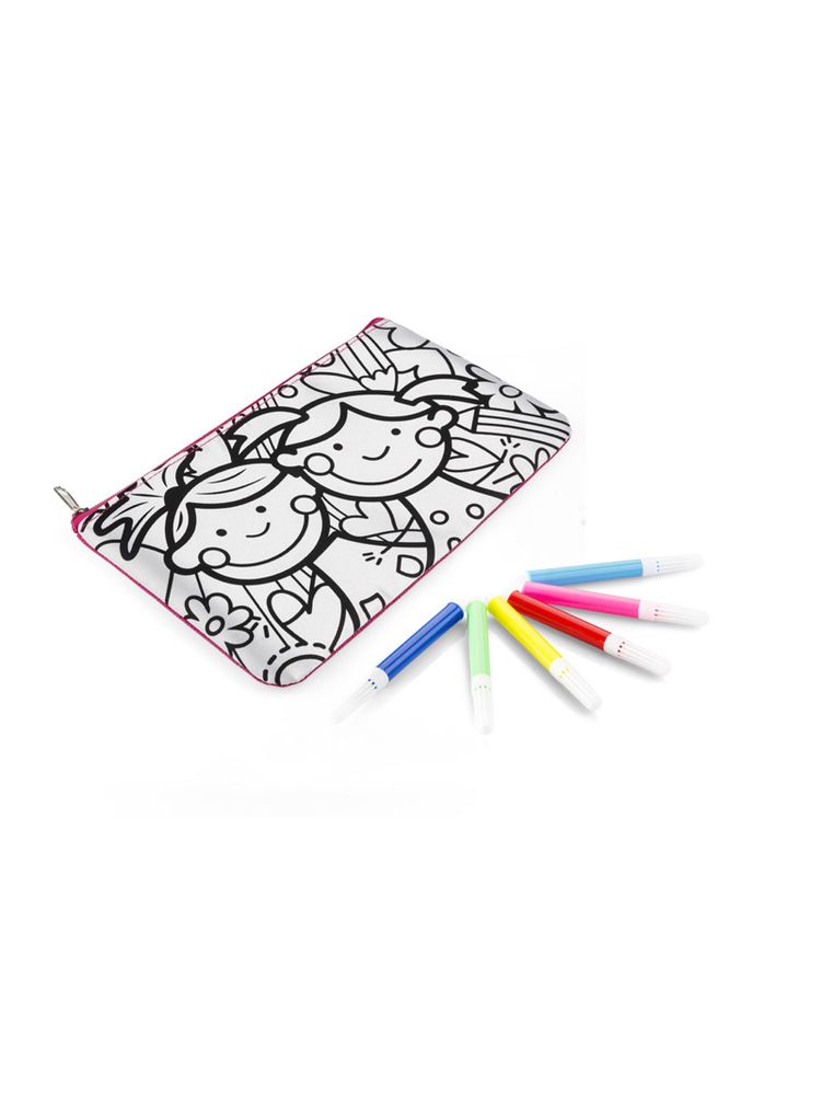 Piórnik ozdobiony grafiką do samodzielnego pokolorowania. Upominek, który potrafi zaangażować i bawić. W zestawie dołączone pisaki w 6 kolorach. Piórnik jednokomorowy zapinany na zamek.