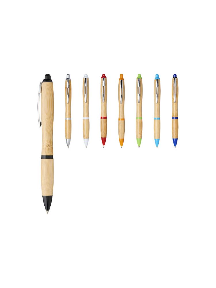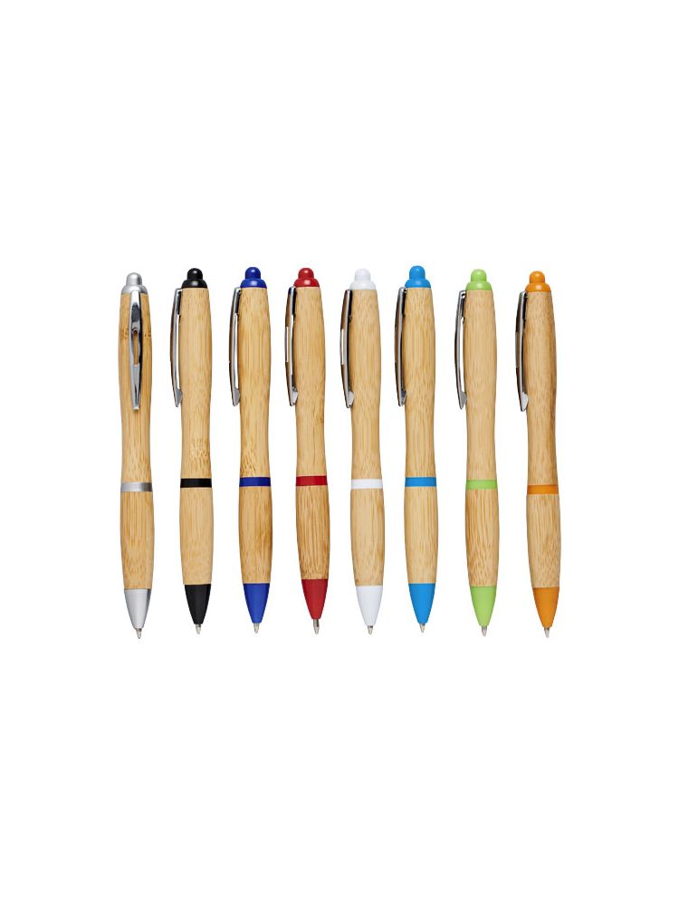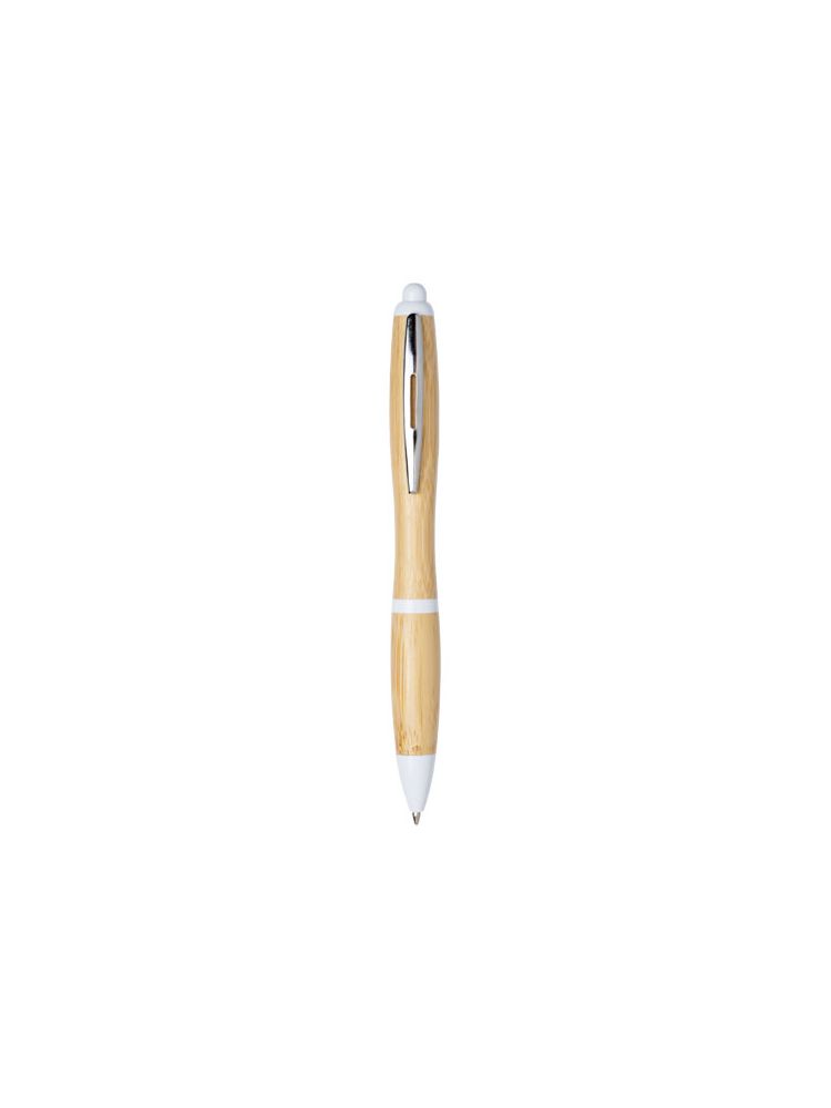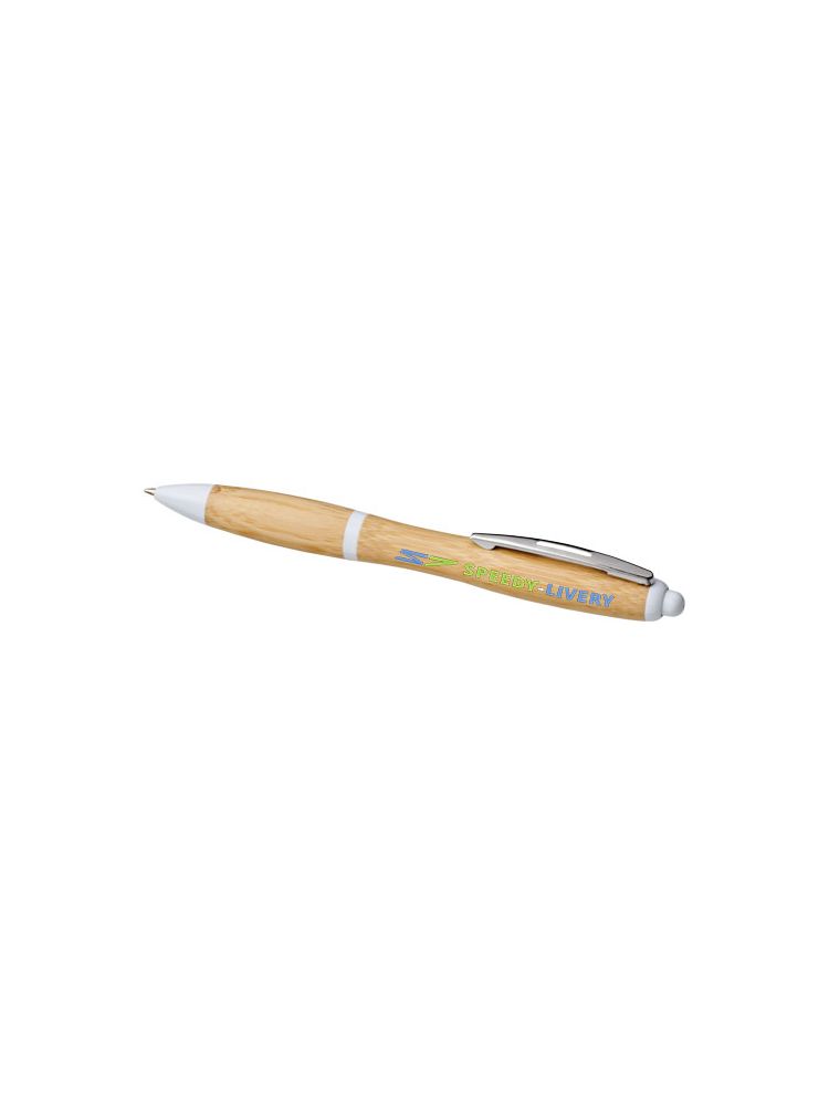 Przyjazny dla środowiska długopis automatyczny z korpusem wykonanym z bambusa, zaakcentowanym chromowanym klipsem i plastikowymi wykończeniami z plastiku ABS. Kolor materiału bambusowego może się różnić.