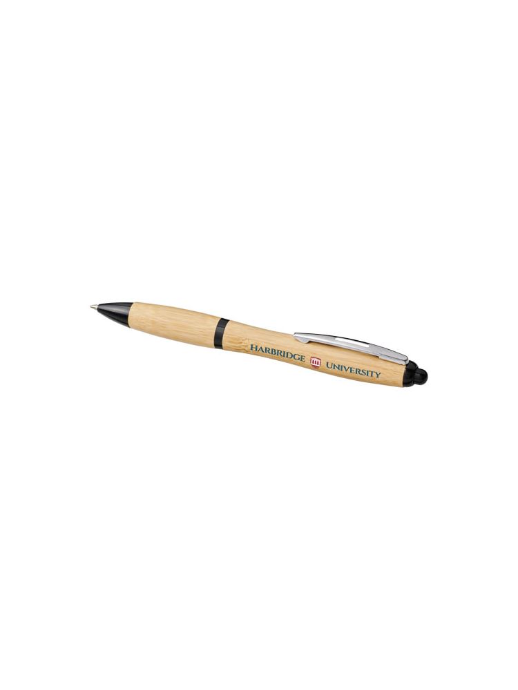 Przyjazny dla środowiska długopis automatyczny z korpusem wykonanym z bambusa, zaakcentowanym chromowanym klipsem i plastikowymi wykończeniami z plastiku ABS. Kolor materiału bambusowego może się różnić.