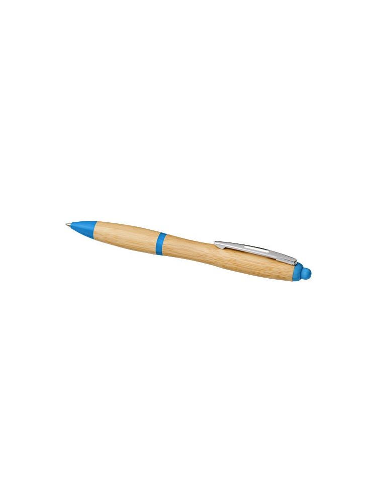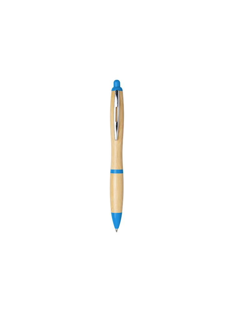 Przyjazny dla środowiska długopis automatyczny z korpusem wykonanym z bambusa, zaakcentowanym chromowanym klipsem i plastikowymi wykończeniami z plastiku ABS. Kolor materiału bambusowego może się różnić.