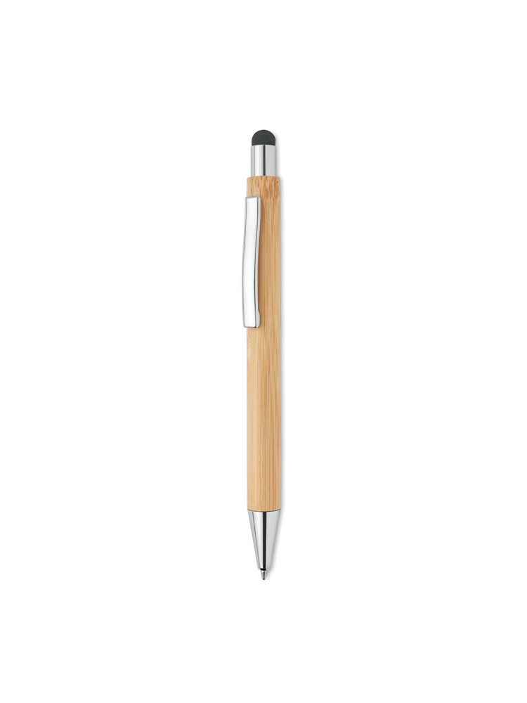 Długopis bambusowy z rysikiem i błyszczącym chromowanym wykończeniem. Niebieski atrament. Bambus jest produktem naturalnym, mogą występować niewielkie różnice w kolorze i rozmiarze. FSC®-certified | FSC 100%, N5.7, FSC-C213206
