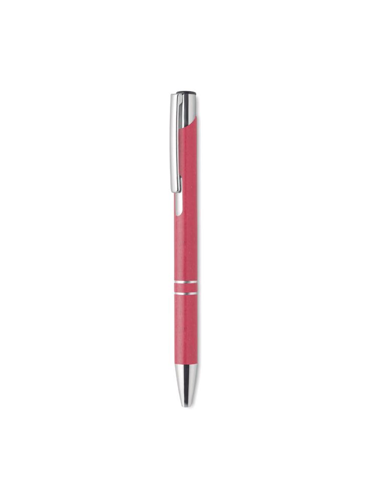 Długopis z przyciskiem 50% słomy pszennej 50% materiału ABS ze srebnym wykończeniem.Niebieski atrament.