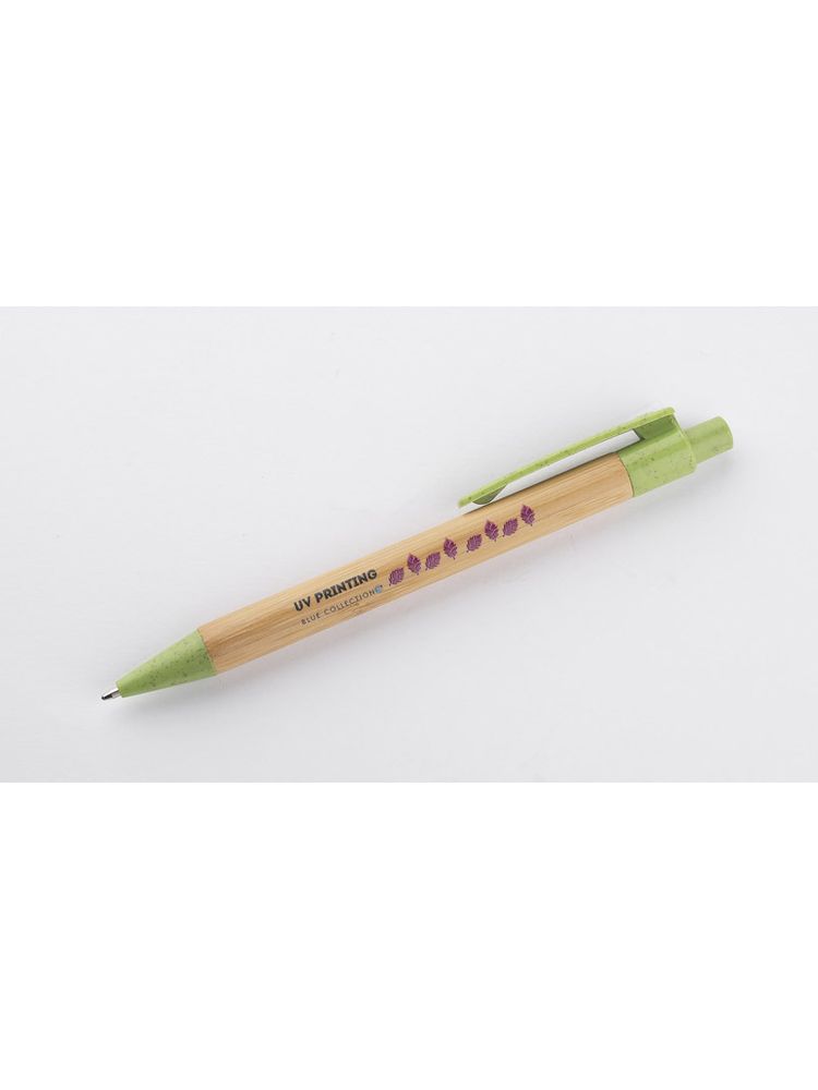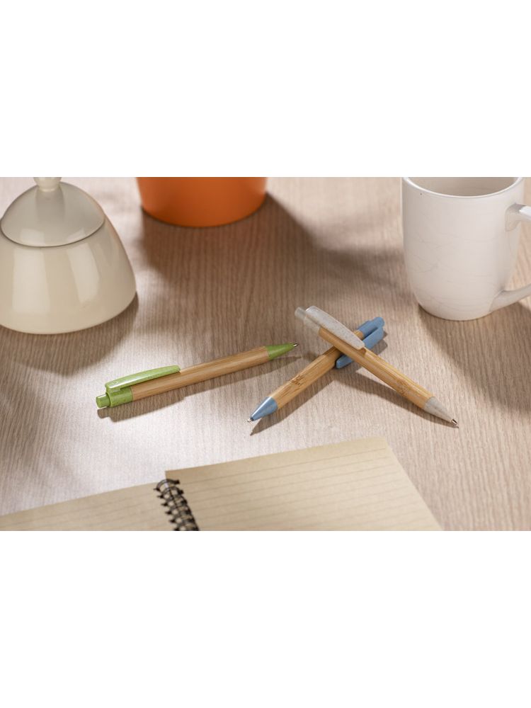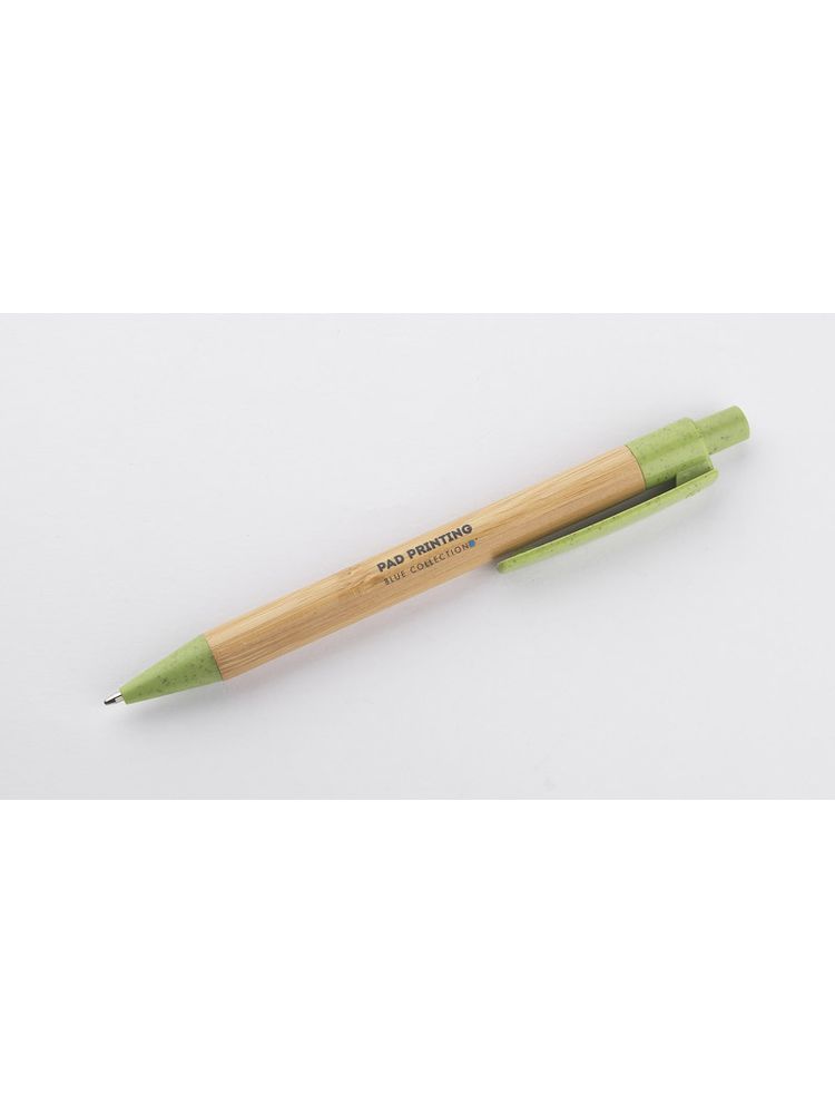 BAMMO to klasyczny długopis wykonany z materiałów przyjaznych środowisku. Bambusowy korpus połączony został z wykończeniami z tworzywa wykonanego w 50% ze słomy. Długopis automatyczny, wkład w kolorze niebieskim.