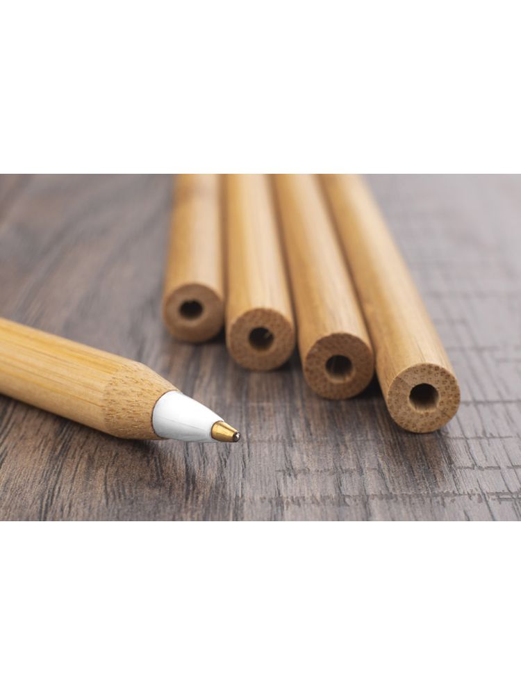 LASS to prosty długopis, którego korpus został wykonany w 100% z naturalnego bambusa. Długopis bez zatyczki. Wkład zabezpieczony przed wysychaniem za pomocą wosku. Wkład typu X20 w kolorze niebieskim.