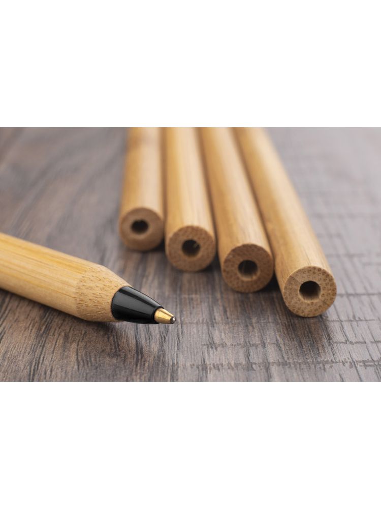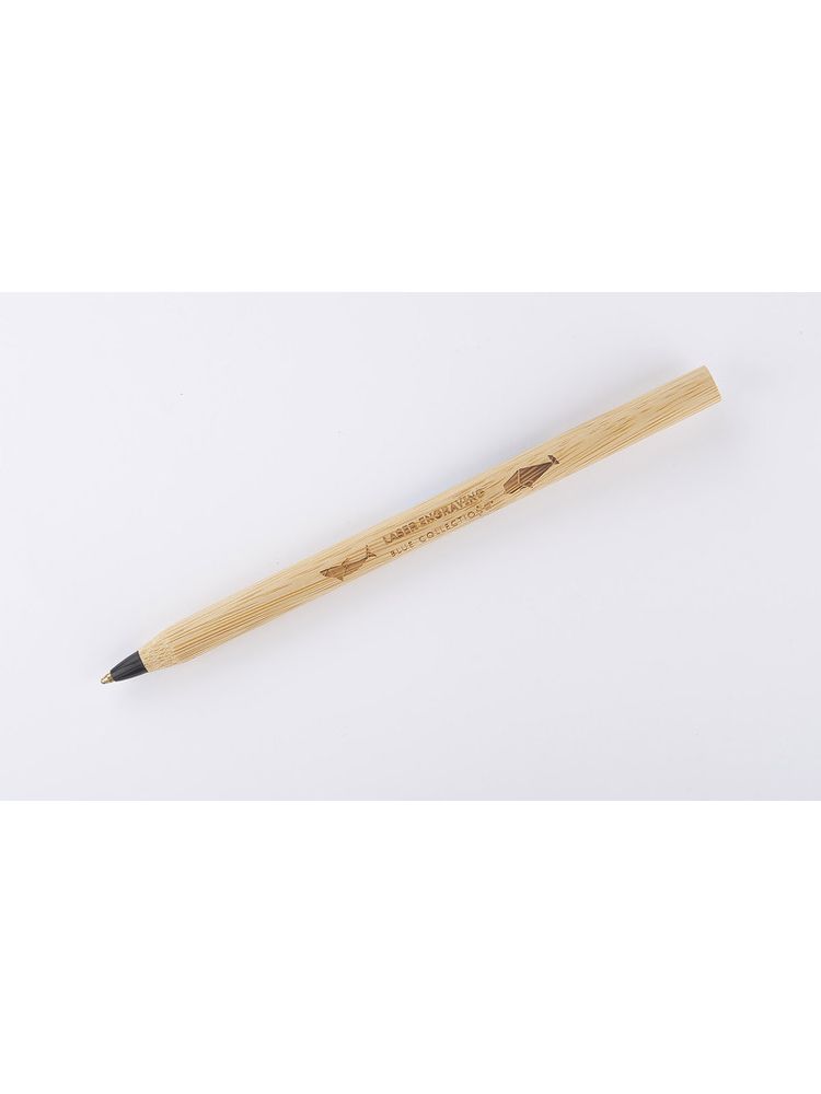 LASS to prosty długopis, którego korpus został wykonany w 100% z naturalnego bambusa. Długopis bez zatyczki. Wkład zabezpieczony przed wysychaniem za pomocą wosku. Wkład typu X20 w kolorze niebieskim.